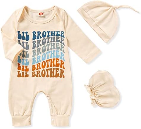 • GRNSHTS Newborn Baby Boy Romper Coming Home Outfits Letter Print Bodysuit Jumpsuit+Hat+Gloves 3PCS Clothes Set